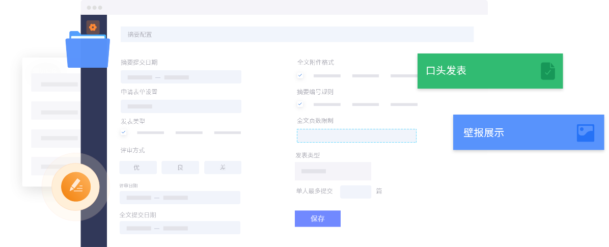 勾选式配置,字段模块简单清晰,可以帮您在1分钟内快速生成信息提交表单,完成摘要作者基本信息收集工作。